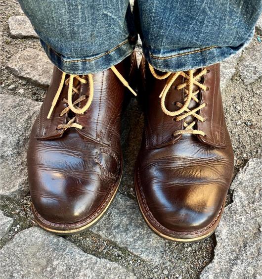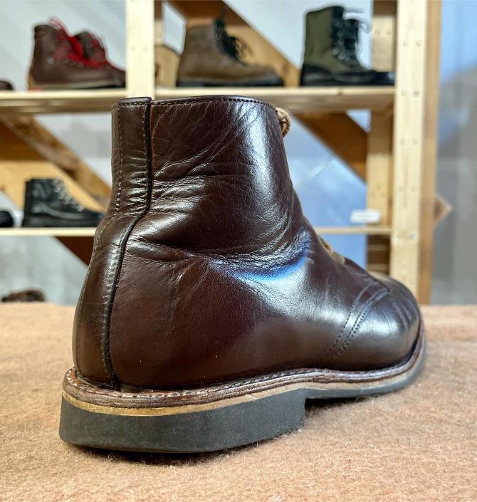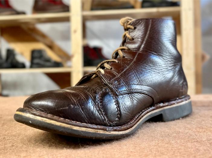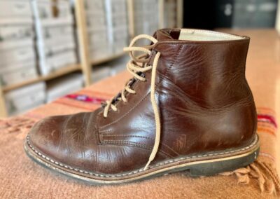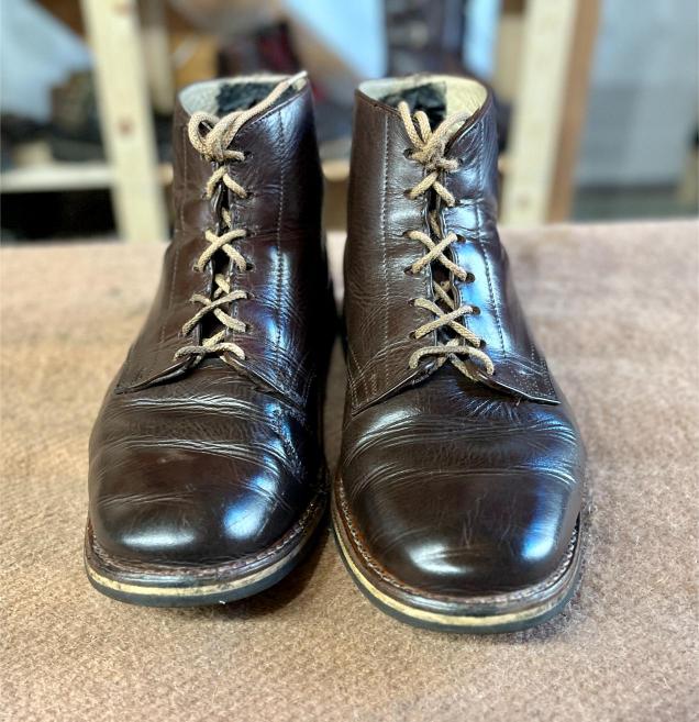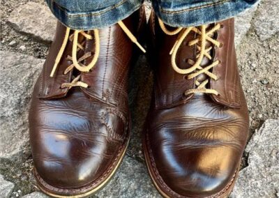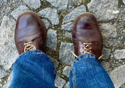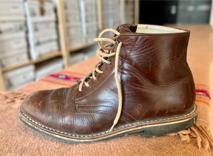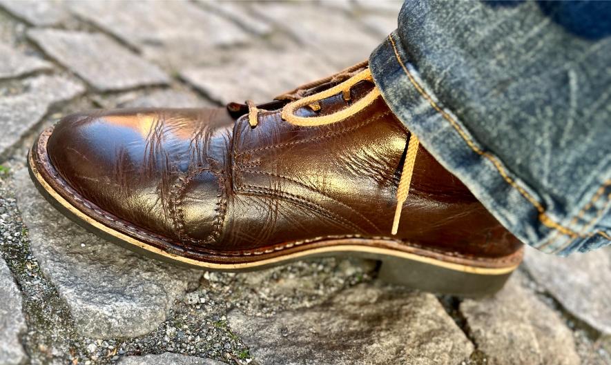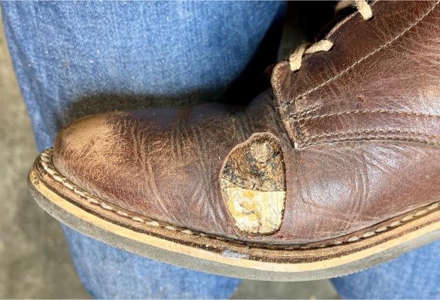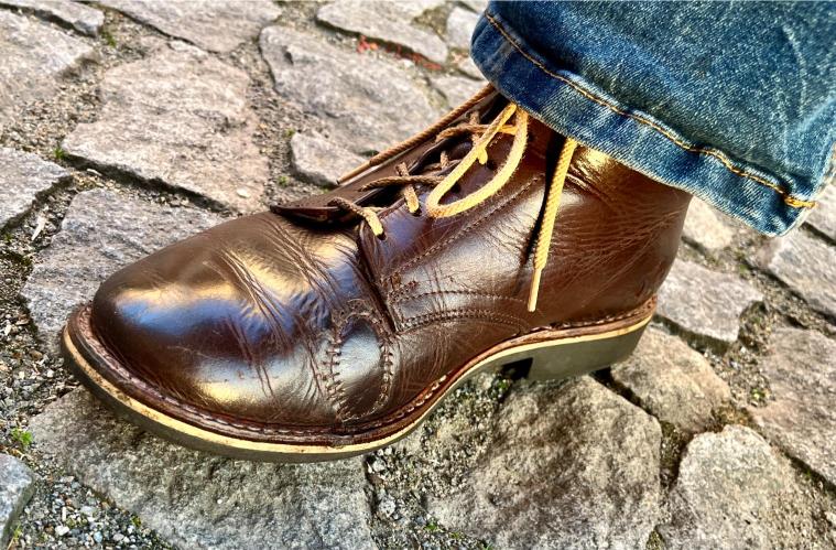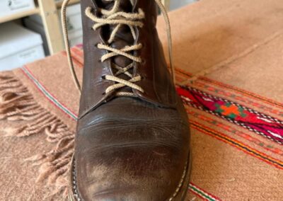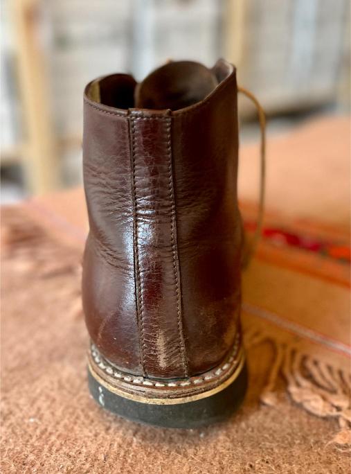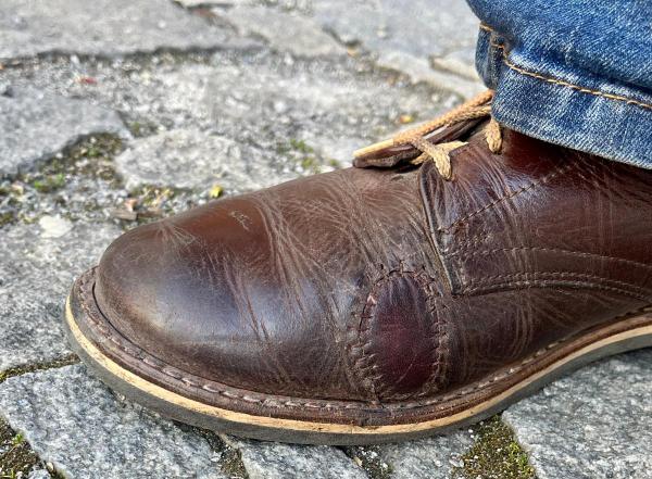 Toto jsou moje vlastní boty Retro, které nosím každý den do práce, v dílně, na procházky s dcerou za pěkného počasí v lese. No moje nejpoužívanější boty. Jednou, na dílně jsem potřeboval vyměnit nože na frézce a tentokrát jsem výjimečně nevytáhl kabel z elektřiny. No a stalo se, že frézka spadla na zem, zapla se, začala kolem sebe dělat paseku. Chytla i moje nohy, ale naštěstí je boty ochránily, ale samy dostaly pořádně do těla. Toto je lekce, kterou si připomínám vždy, když pracuji s elektrickým nářadím, nebo se kouknu na své boty.