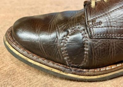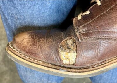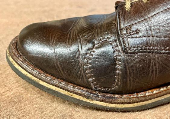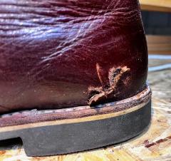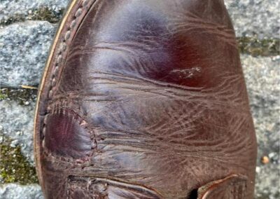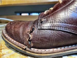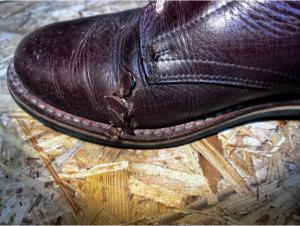 Poškození jsem zkoušel zalepit lepidlem na kůži. Použil jsem i tekutou kůži. Vše vypadalo skvěle, ale až do první procházky. Celé se to rozlepilo a bylo zase na začátku. Hold lepení, tady nefunguje a tekutá kůže je možná dobra tak na lepení kožené sedačky a ne kožených bot, které se používají hodně a často.