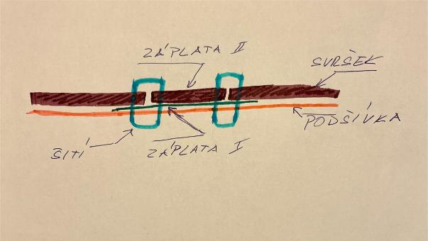 Tady jsem se snažil nakreslit jak oprava vypadá v průřezu. Mělo by to držet.