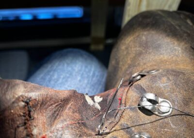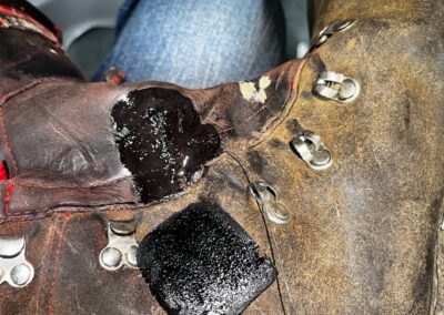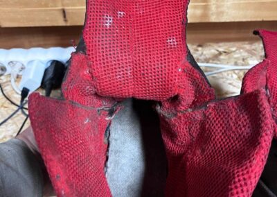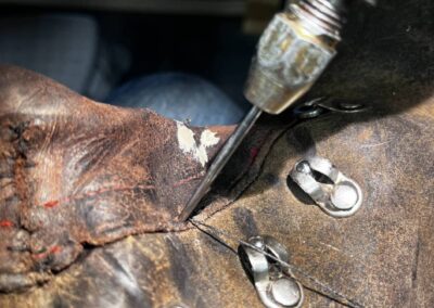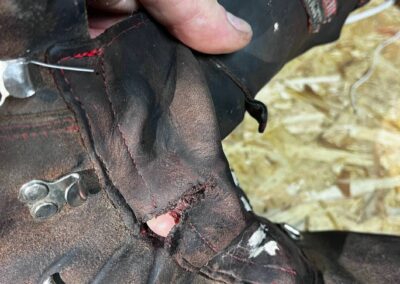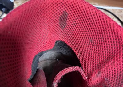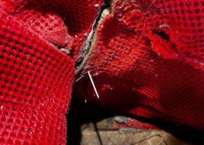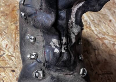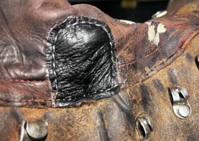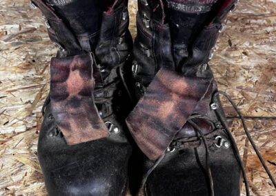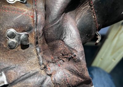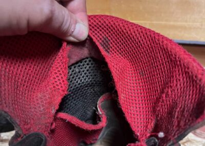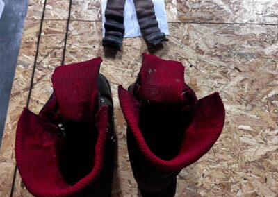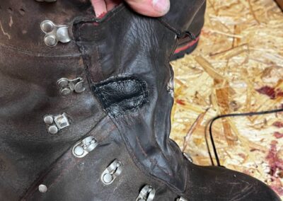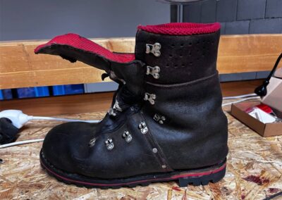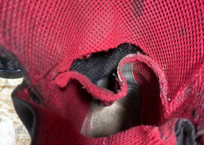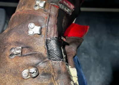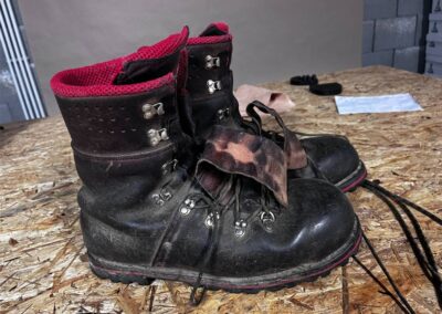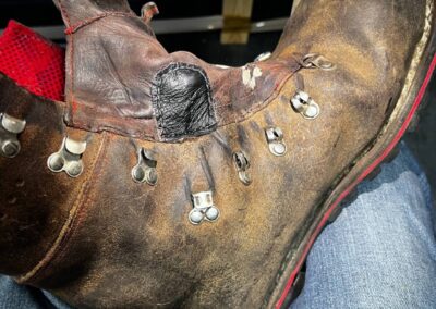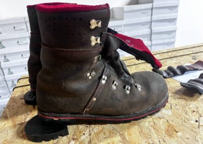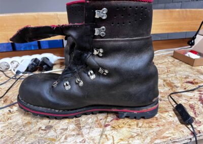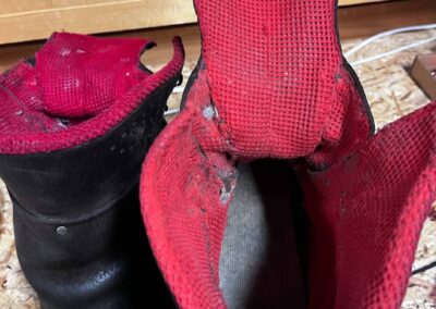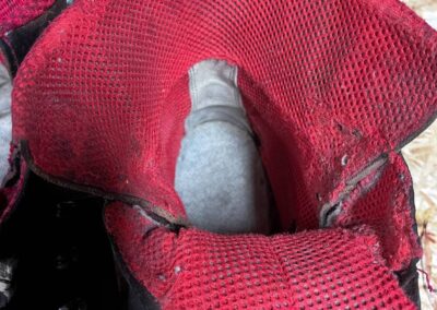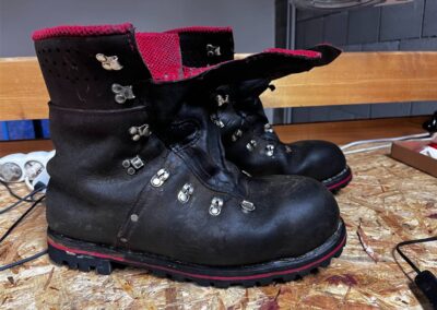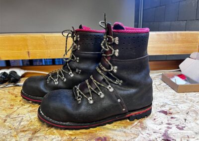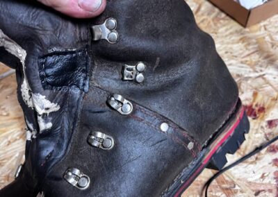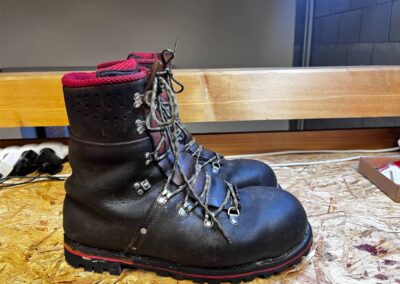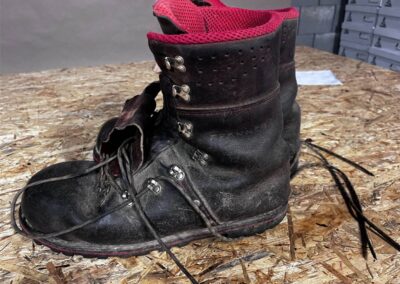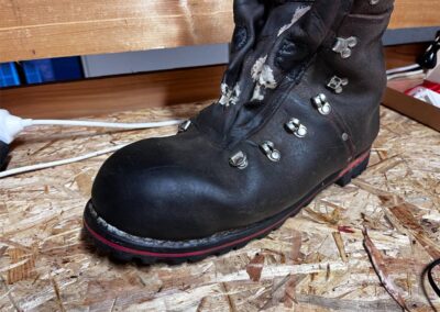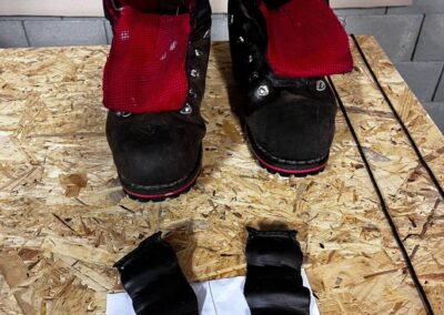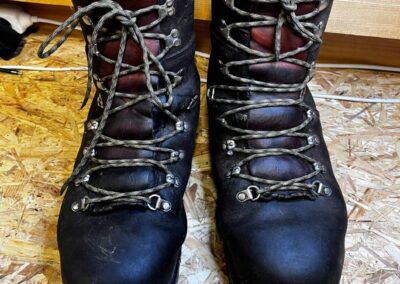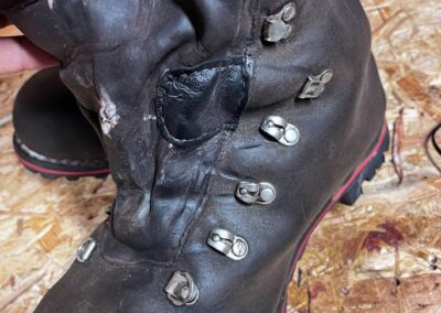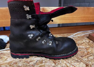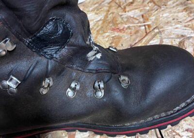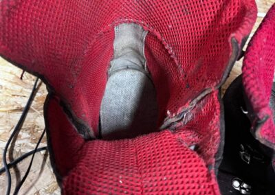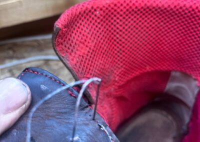 Díry v kůži jsem zašil nití Dyneema a klokaní kůži. Podšívku jsem zpět zalepil a přišil nití Dyneema. Myslím, že další oprava jazyku, podšívky budu směřovat ke kompletní výměně k samotnému výrobci bot. Svršek bot je ve skvělém stanu.