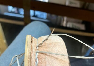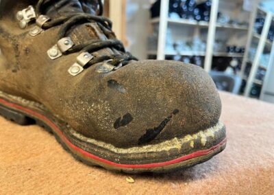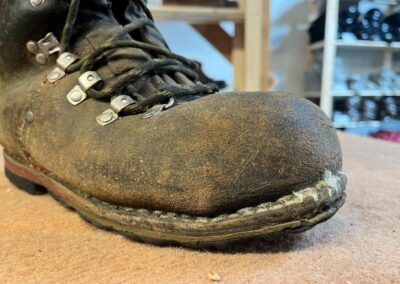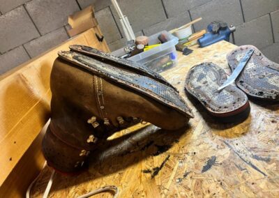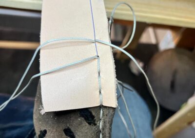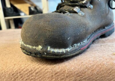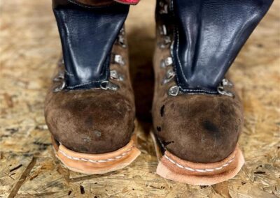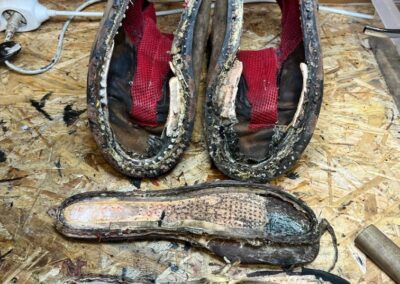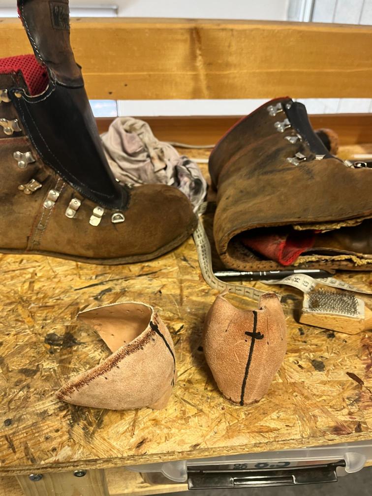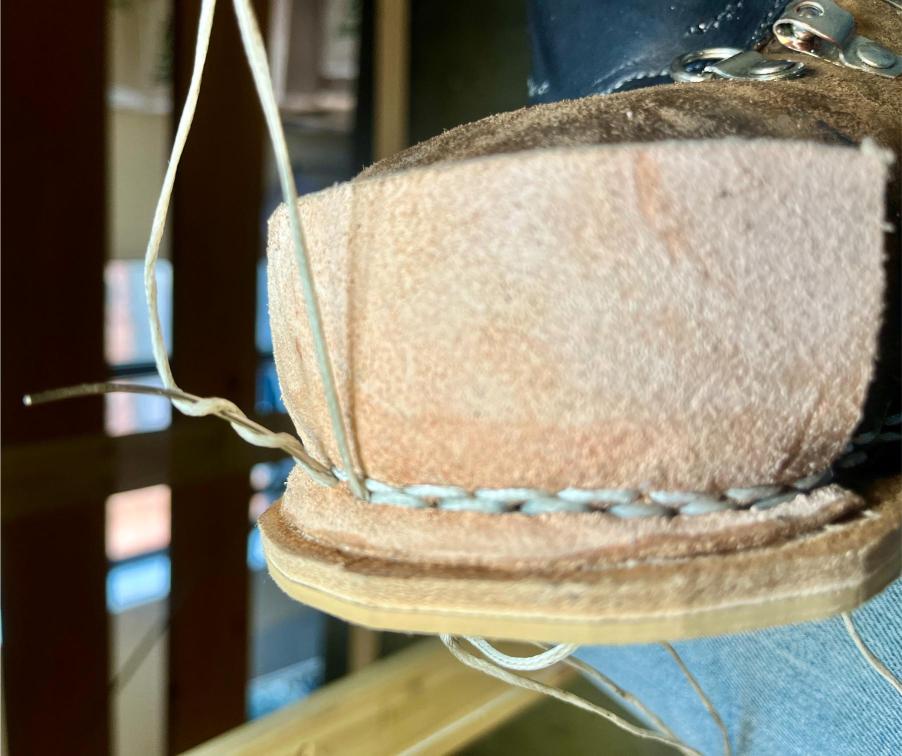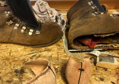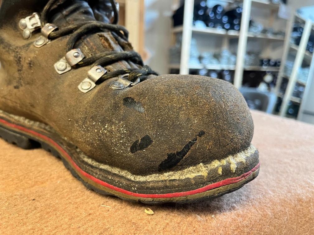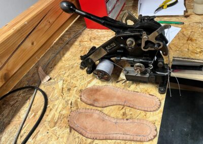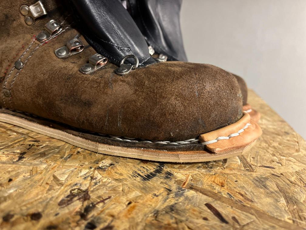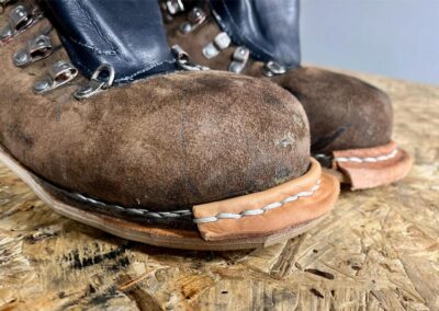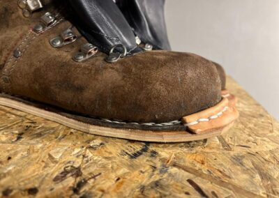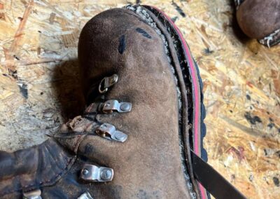 Přišití nové napínací stélky, která se skládá ze 3 částí, nití z Dyneema. Hlavně do toho zapracovat kovovou špičku bot, ochranu šití ve špičce, které neskutečně trpí a bylo prakticky zničené.