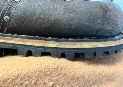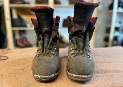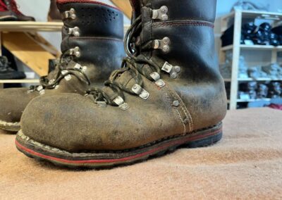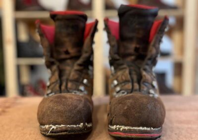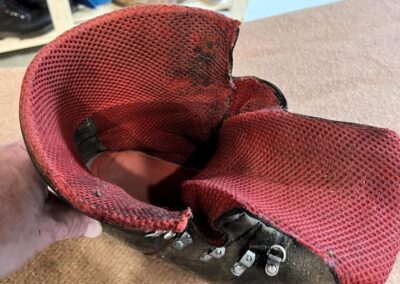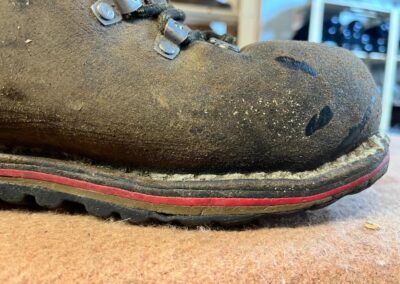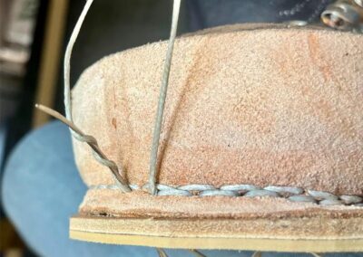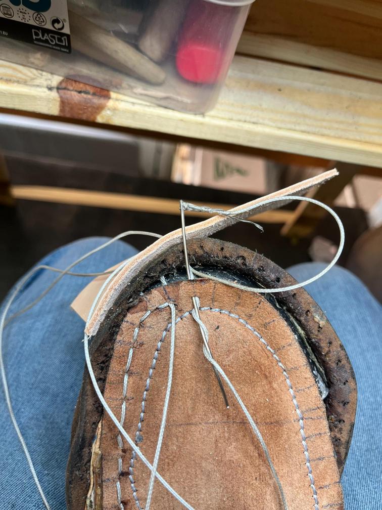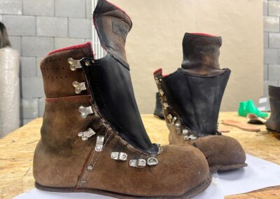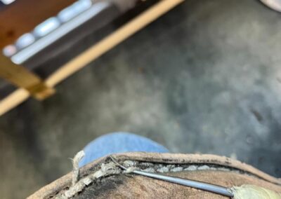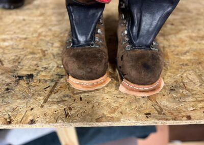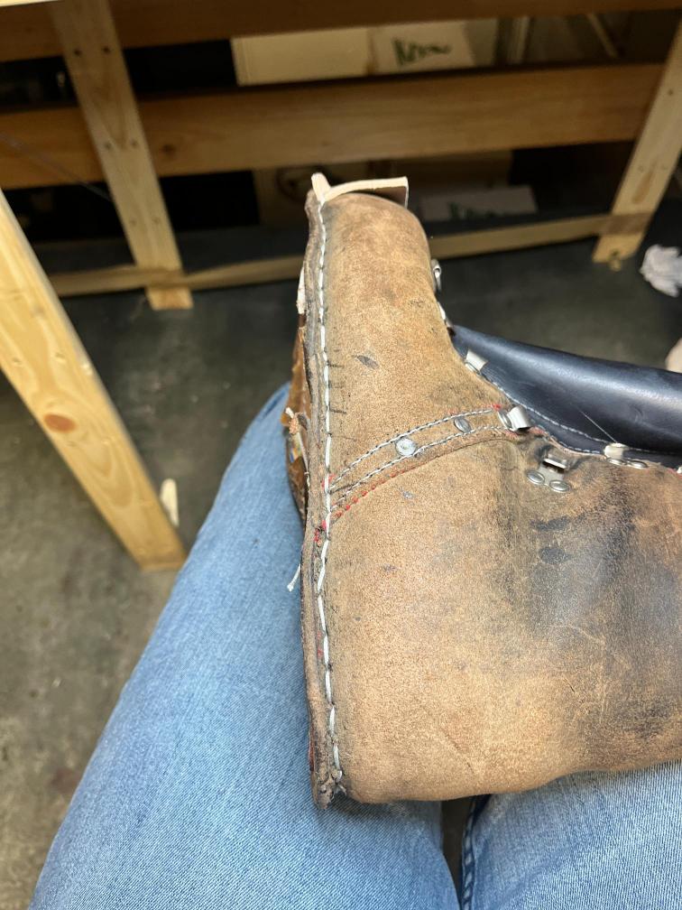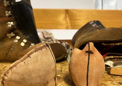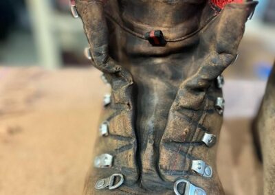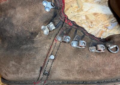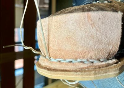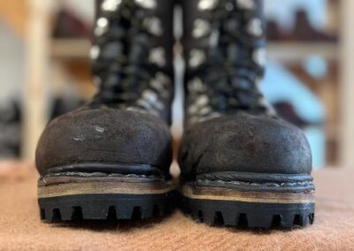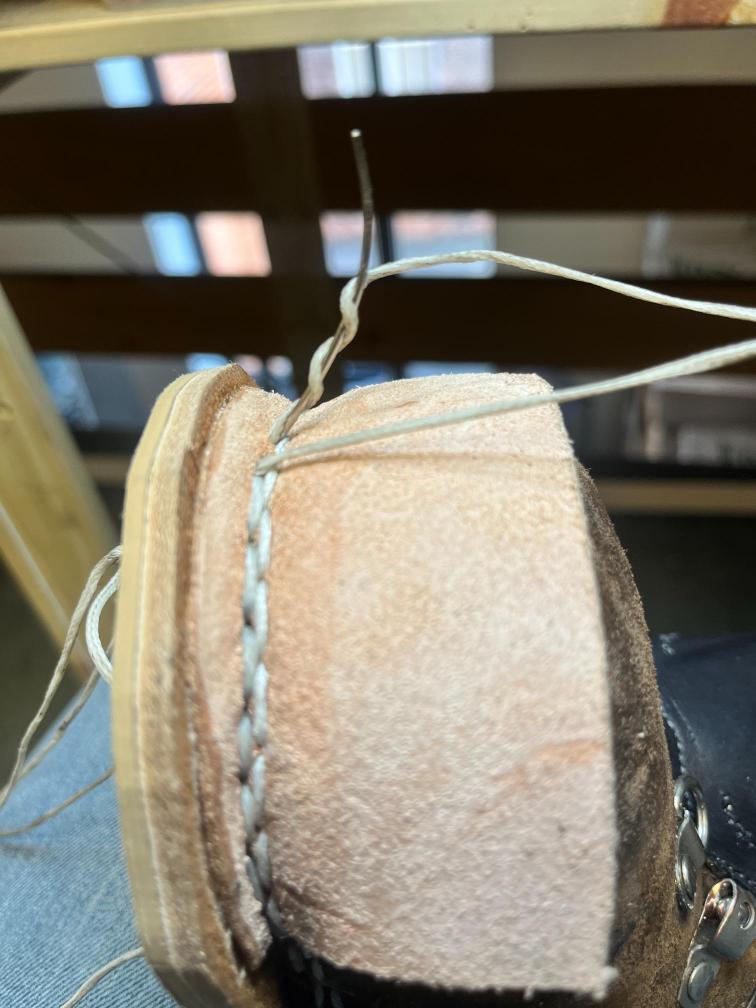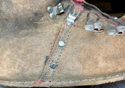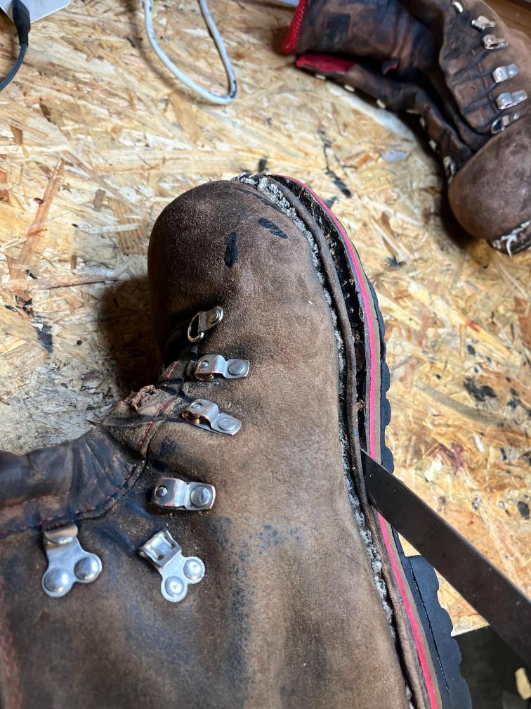 Přišití nové napínací stélky, která se skládá ze 3 částí, nití z Dyneema. Hlavně do toho zapracovat kovovou špičku bot, ochranu šití ve špičce, které neskutečně trpí a bylo prakticky zničené.