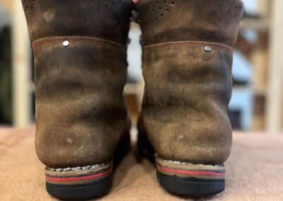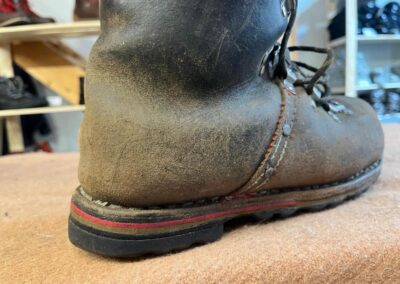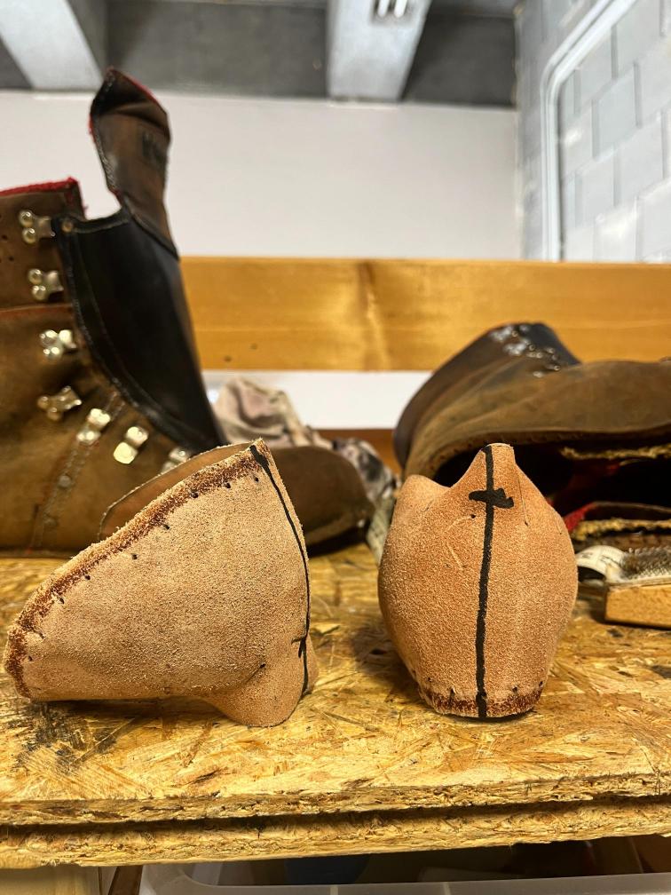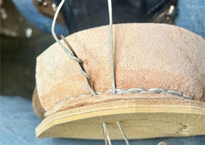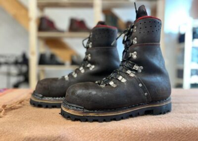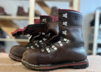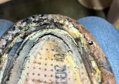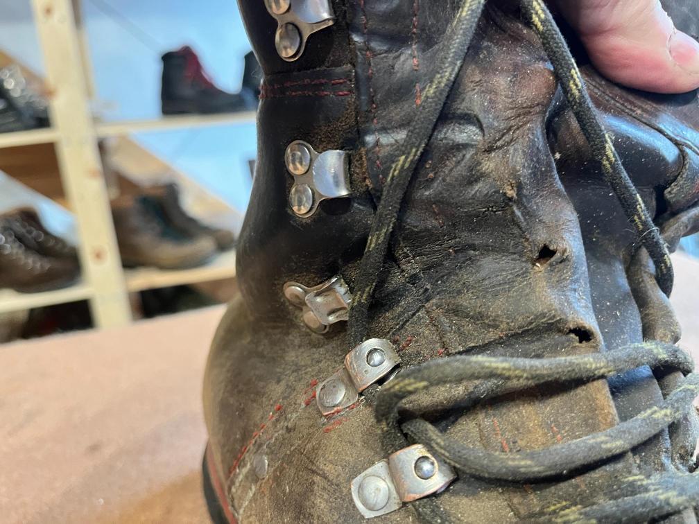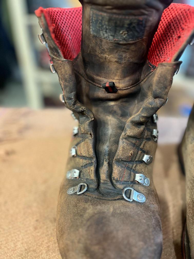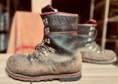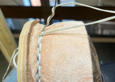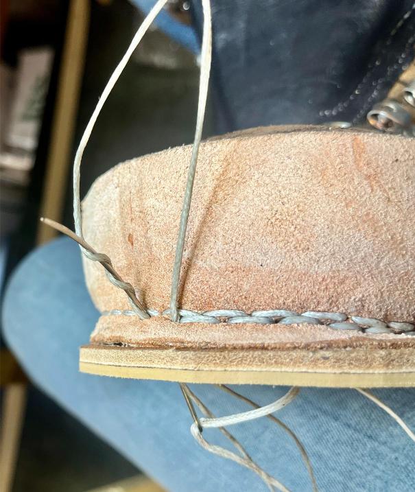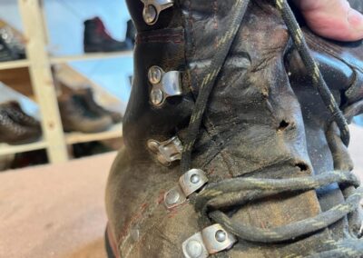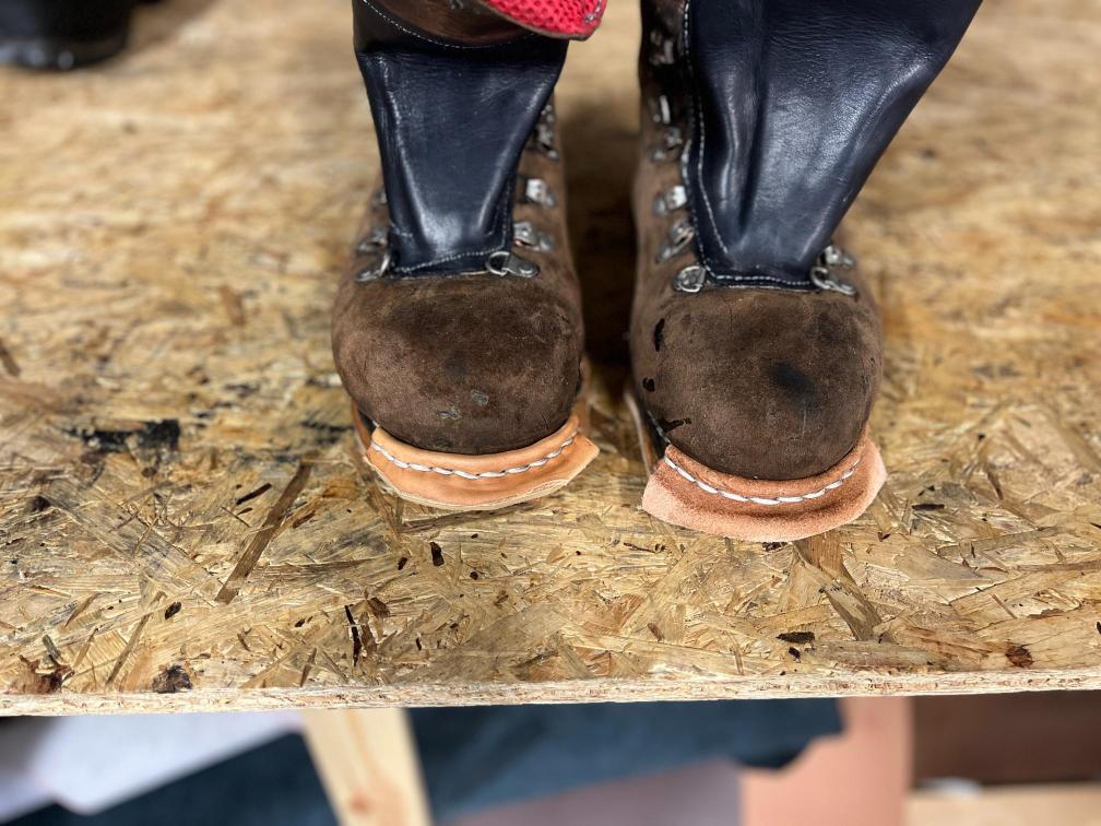 Přišití nové napínací stélky, která se skládá ze 3 částí, nití z Dyneema. Hlavně do toho zapracovat kovovou špičku bot, ochranu šití ve špičce, které neskutečně trpí a bylo prakticky zničené.