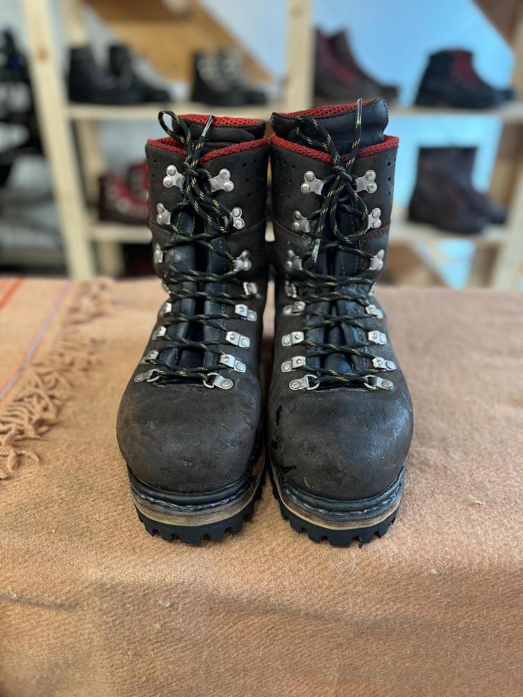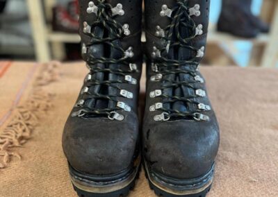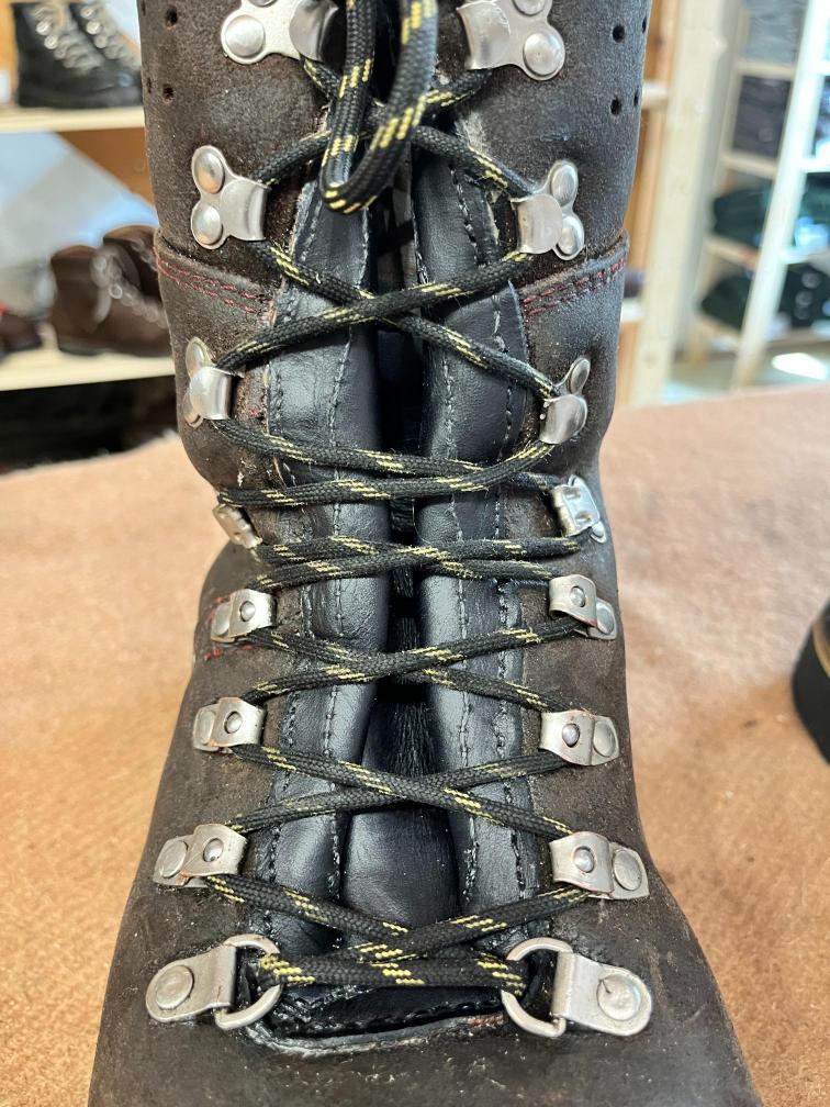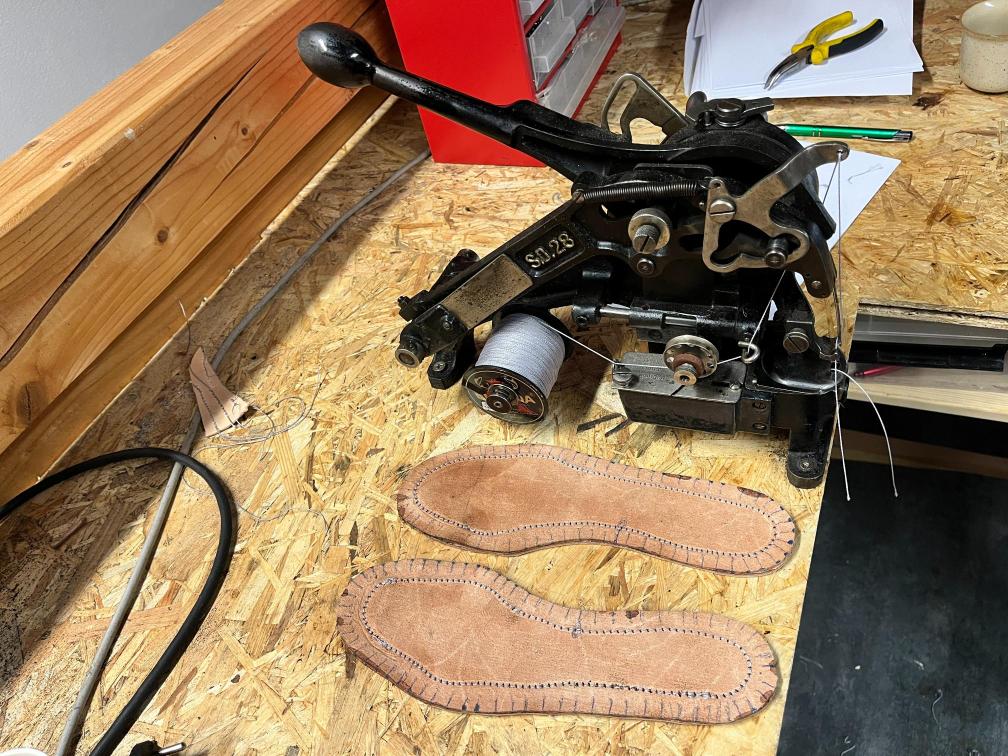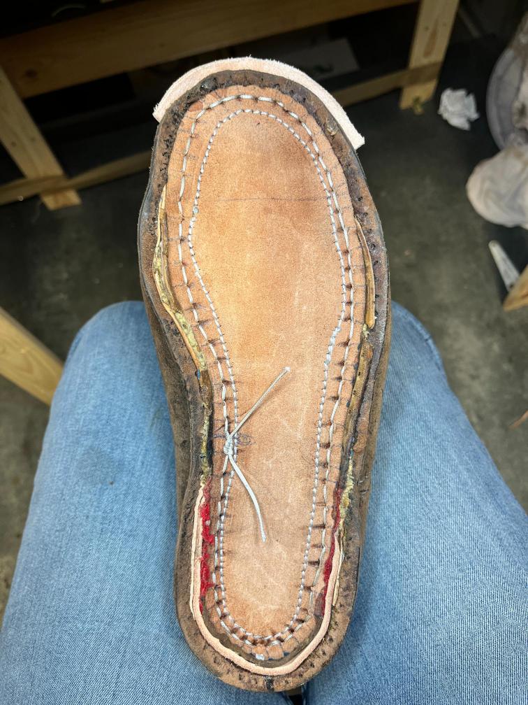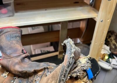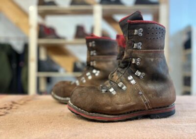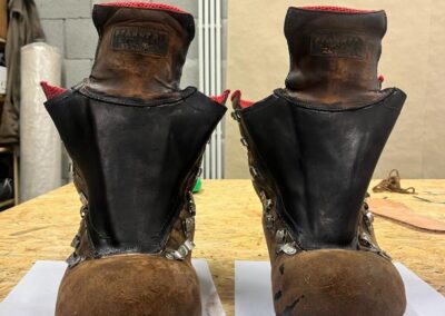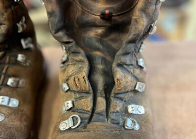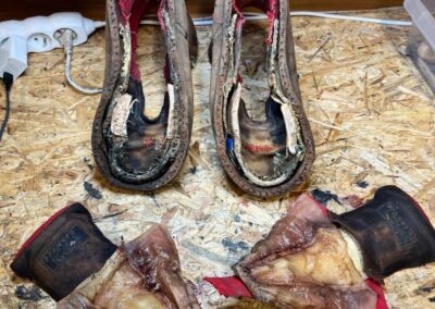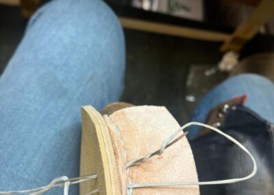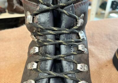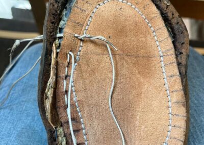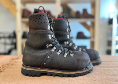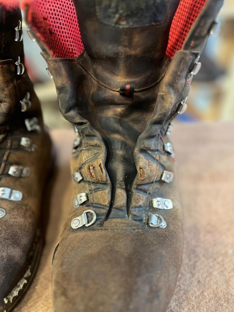 Přišití nové napínací stélky, která se skládá ze 3 částí, nití z Dyneema. Hlavně do toho zapracovat kovovou špičku bot, ochranu šití ve špičce, které neskutečně trpí a bylo prakticky zničené.