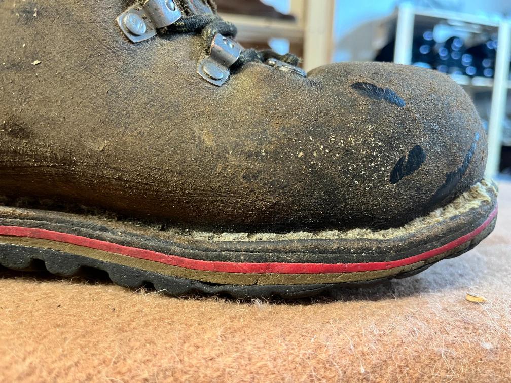 • špička boty opatřena krytím šití z 2,5 mm hovězího kruponu a přišitá 2 mm provazem Dyneema, tak to nepřekoná snad nic, kromě JMP,