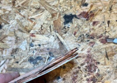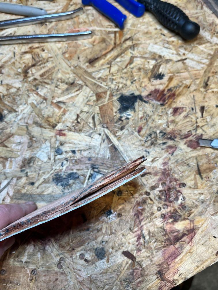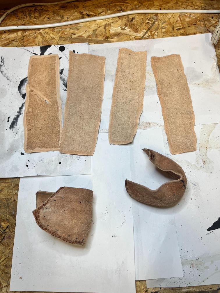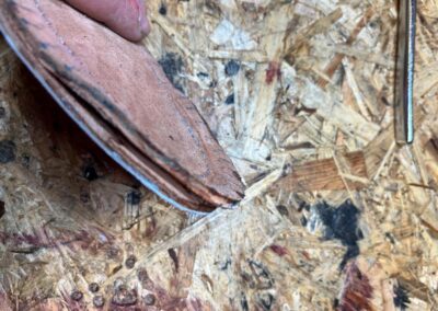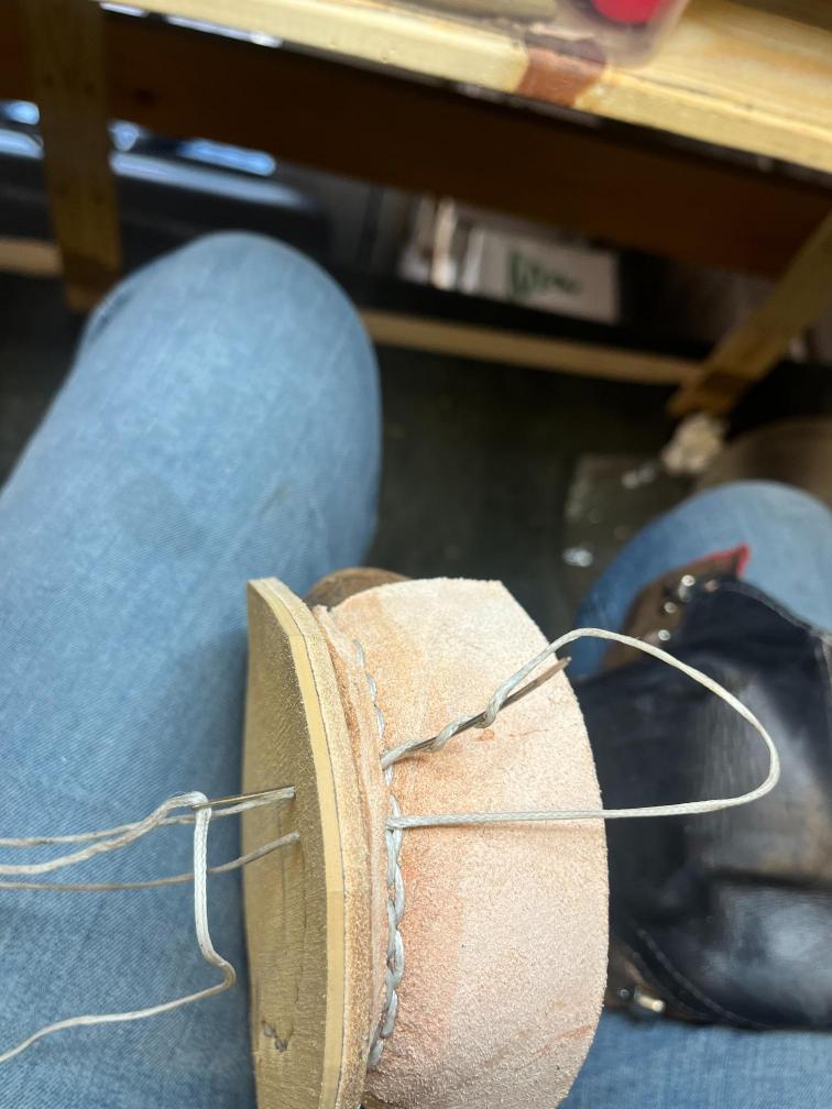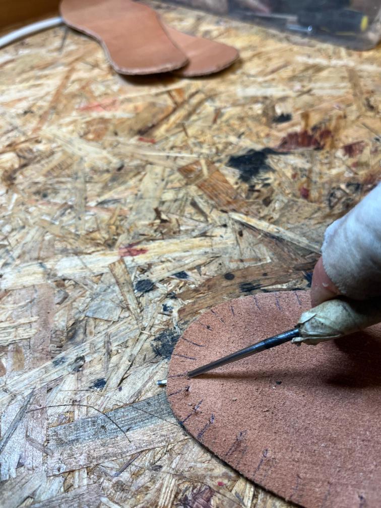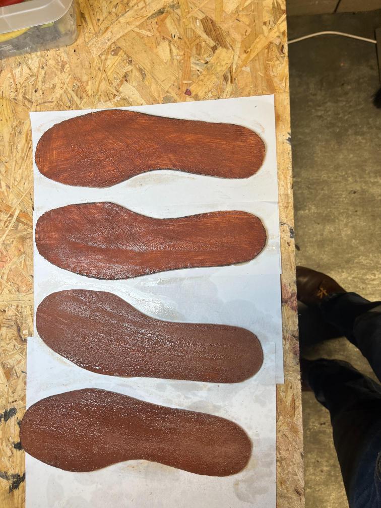 Nová napínací stélka, Která se skládá ze 3 částí a to z důvodu ocelové špičky. Musel jsem improvizovat, ale bude to držet lépe, než původní stélka, Celé jsem to přešil nití Dyneema. Ta oranžová kůže je klokaní 🙂