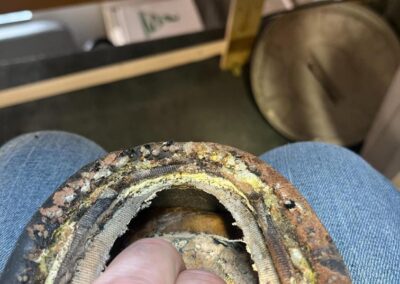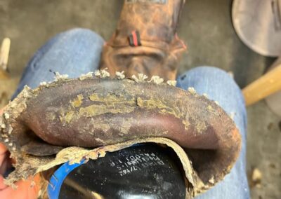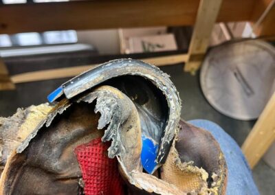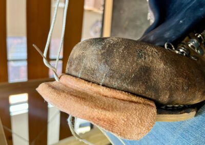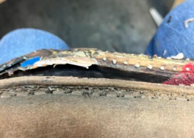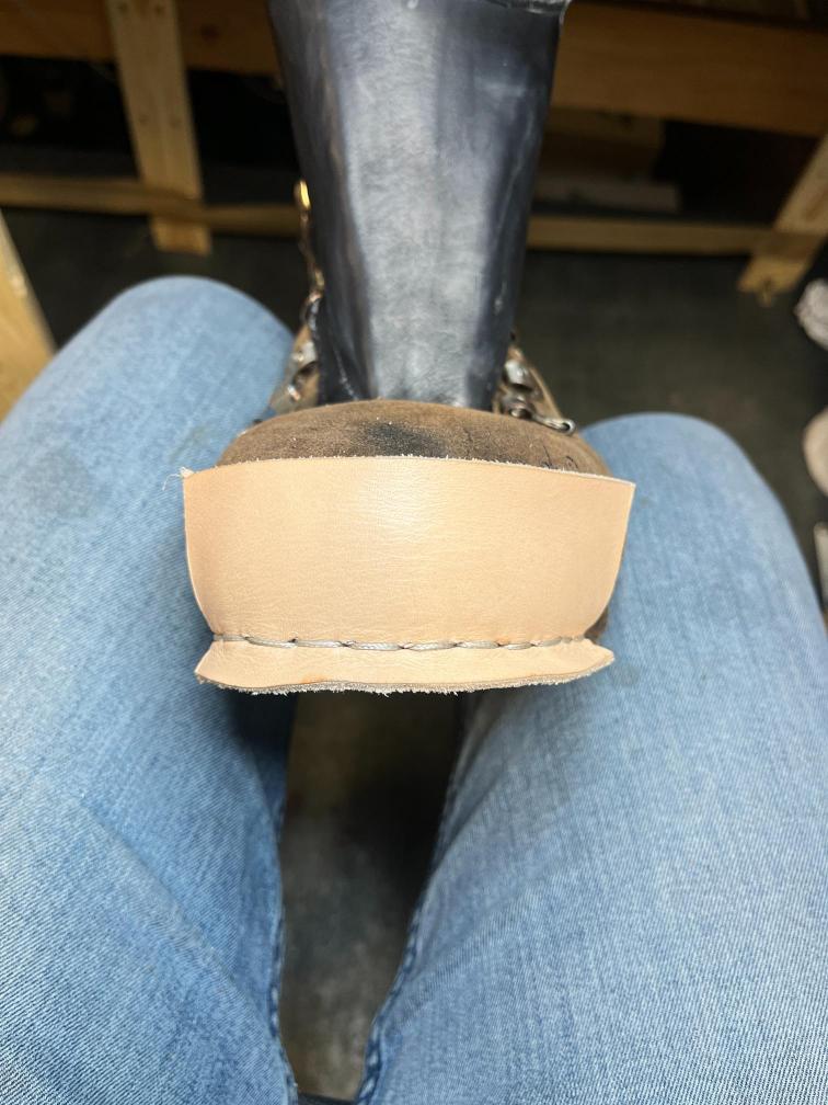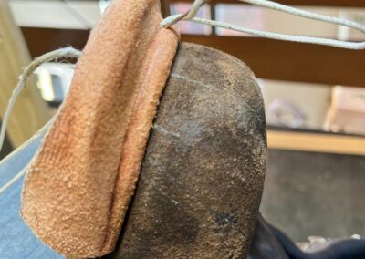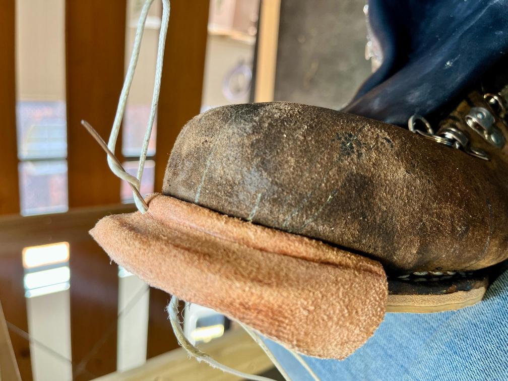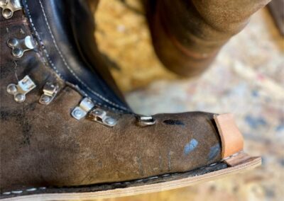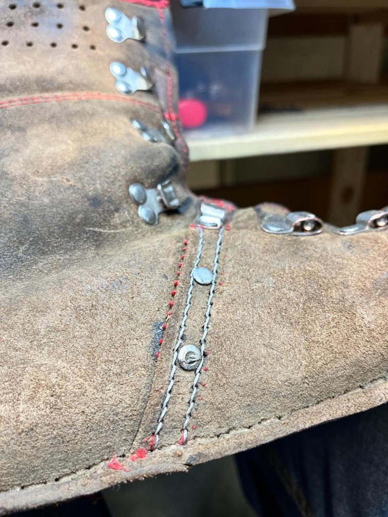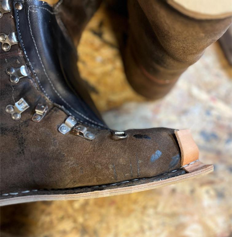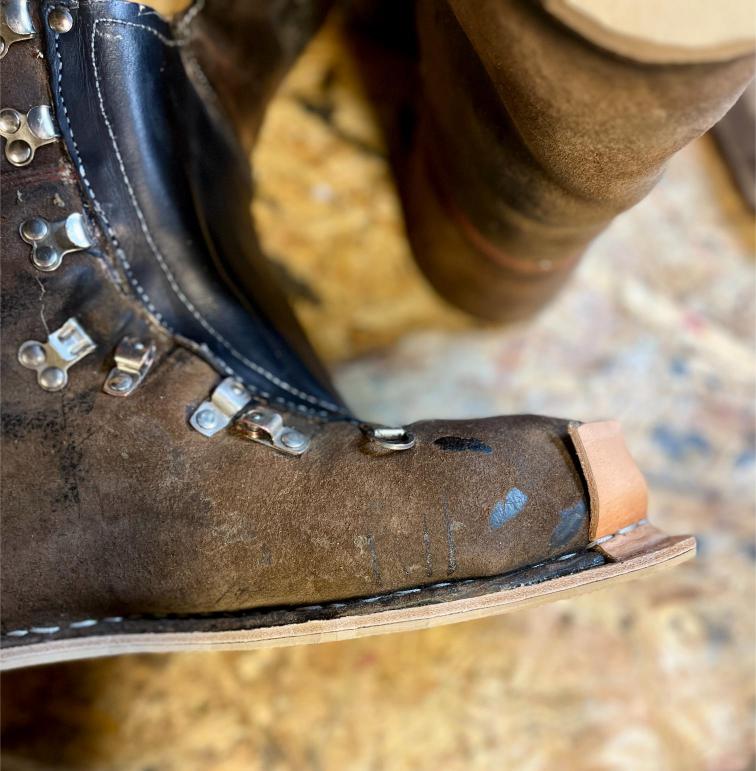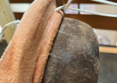• výměna kůže na jazyku za robustnější kůži, 2,5 mm hovězí krupon, přišito nití Dyneema šicím strojem,