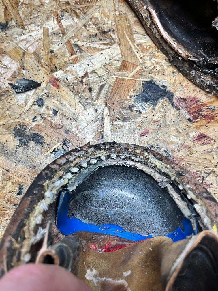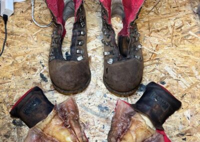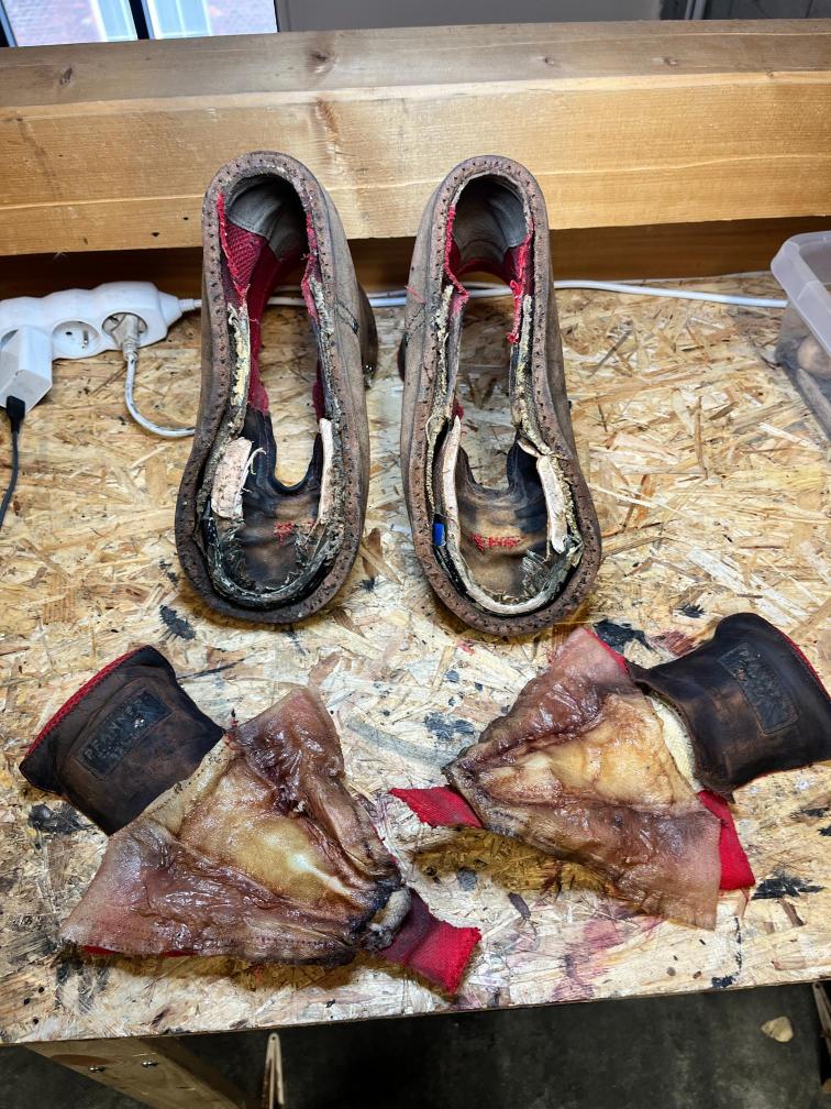 Ze starých bot zůstala kůže svršku, která je opravdu nezničitelná a ještě dlouhé roky bude skvěle sloužit, podšívka a kevlarové výztuhy proti proříznutí a samozřejmě kovová špička, která vydrží snad všechno 🙂