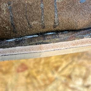 Boční šev, který jsem už opravoval pořád drží, ale i přesto jsem jej vyměnil a přešil ručně sedlářským stehem nití Dyneema, do původních dírek po starém šití.