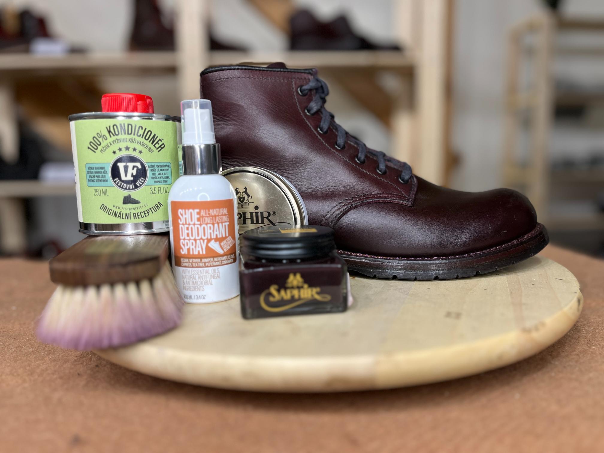 - Svršek ošetřím krémem, který je na obuv nejlepší. Osobně nejraději používám Saphir krém v barvě bot.