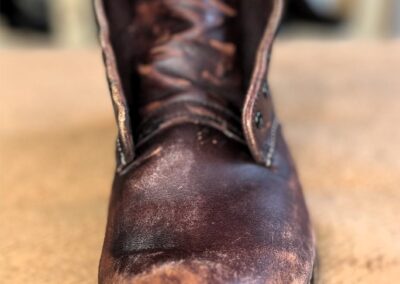- Na suchý svršek (může být i po několika dnech, než boty vyschnou) nanesu Saphir krém v barvě bot a po 10 min. vyleštím kartáčem, pokud to boty potřebují, aby se sjednotila barva a zacelily škrábance.