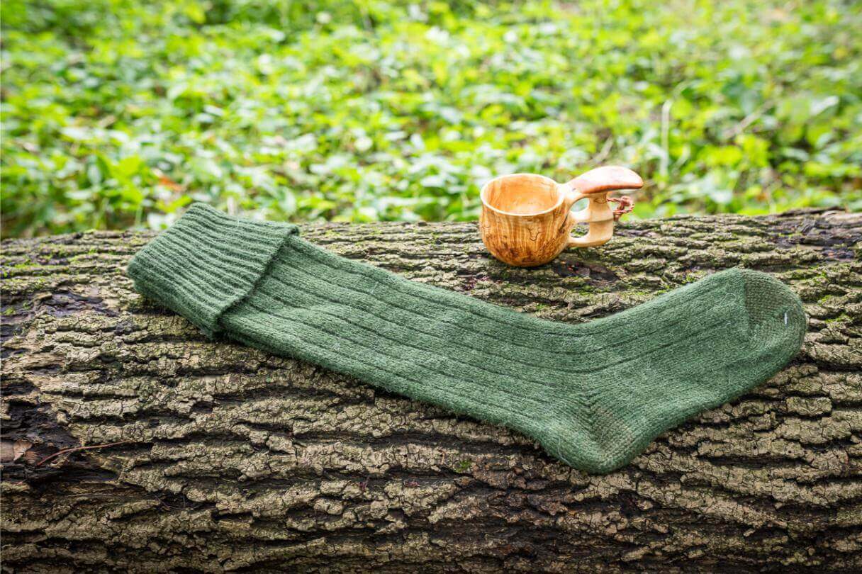 - Potom se ponožky natáhnou na připravené dřevěné kopyto, nechají uschnout a zatáhnout. Tímto postupem získávají své unikátní vlastnosti, jako je mechanická odolnost, netřepí se, mají zvýšenou odolnost proti potu i živlům. Zároveň si na rozdíl od plstěné vlny zachovávají loft, tedy hřejivost jako volně pletená vlna.