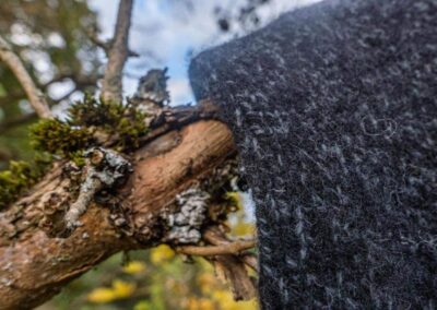 • Potom se svetr natáhne na připravené dřevěné kopyto, nechá uschnout a zatáhnout. Tímto postupem získává své unikátní vlastnosti, jako je mechanická odolnost, netřepí se, má zvýšenou odolnost proti větru a počasí. Zároveň si na rozdíl od plstěné vlny zachovává loft, tedy hřejivost jako volně pletená vlna.
