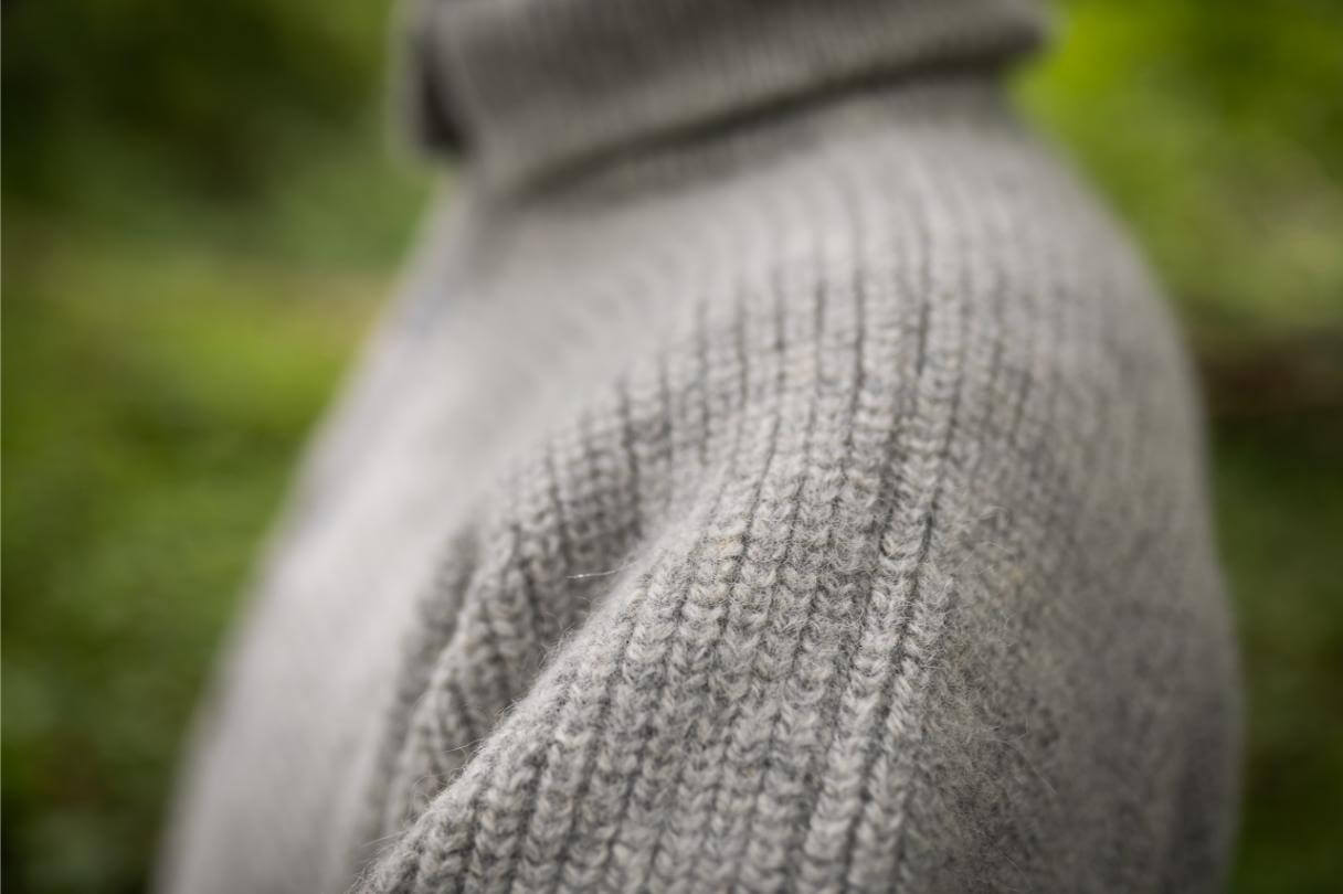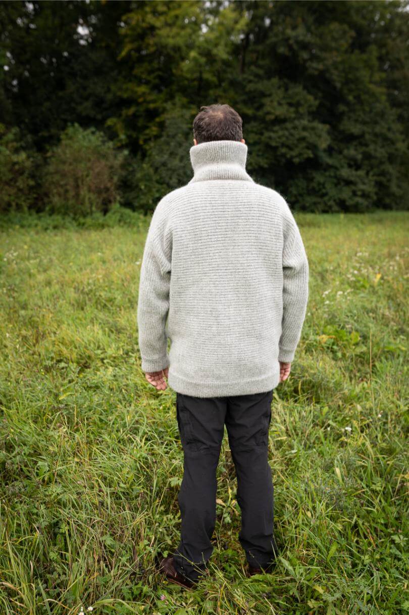 Tento svetr nemá jen těžké jméno. Kolem 1,5kg čisté vlny (vel. XL), ve směsi 50P/50 (vlna z lamy alpaky + merino ovcí).