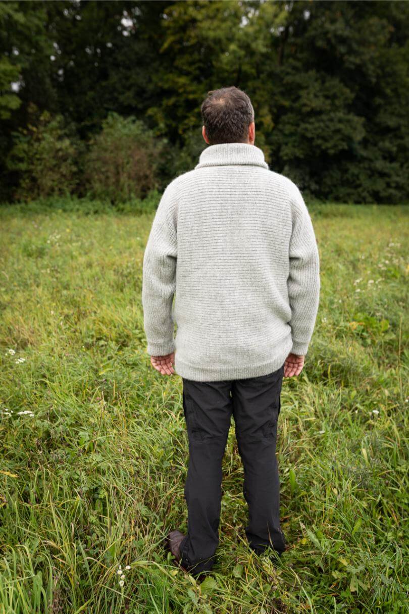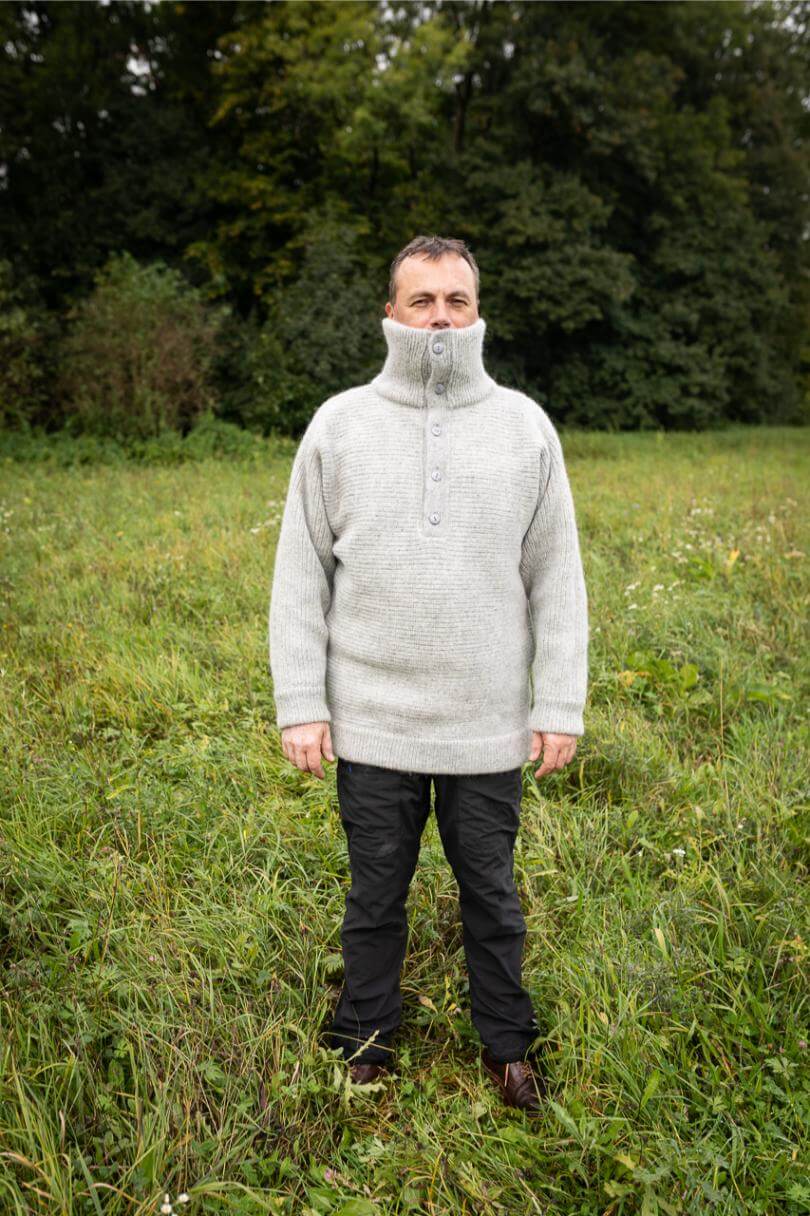 Toto není nějaký „retro remake“. Je vyrobený podle stejných kritérií a nároků na kvalitu – akorát z luxusnější vlny, která méně kouše a je tvárnější. Důležitý faktor je i to, že na bazarech se tyto svetry shání velmi těžko. Když někde jsou, často je to novodobá kopie, nebo je to opravdu originál… ale sražený praním o 2-3 velikosti. Tohle nám vždycky trhá srdce – už ani nepočítáme, kolik jsme vraceli svetrů velikosti „L“ a „XL“ – ty uvozovky jsou tam proto, že reálně byly přinejlepším velikosti S, často tak sražené, že rukávy ani nešly natáhnout přes lokty.